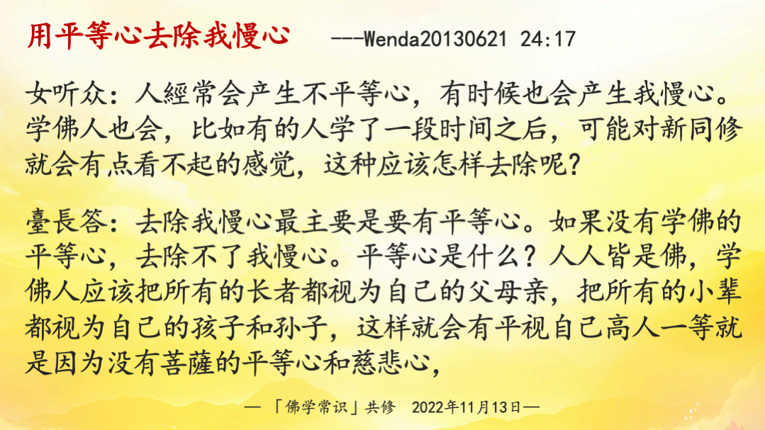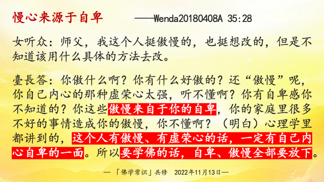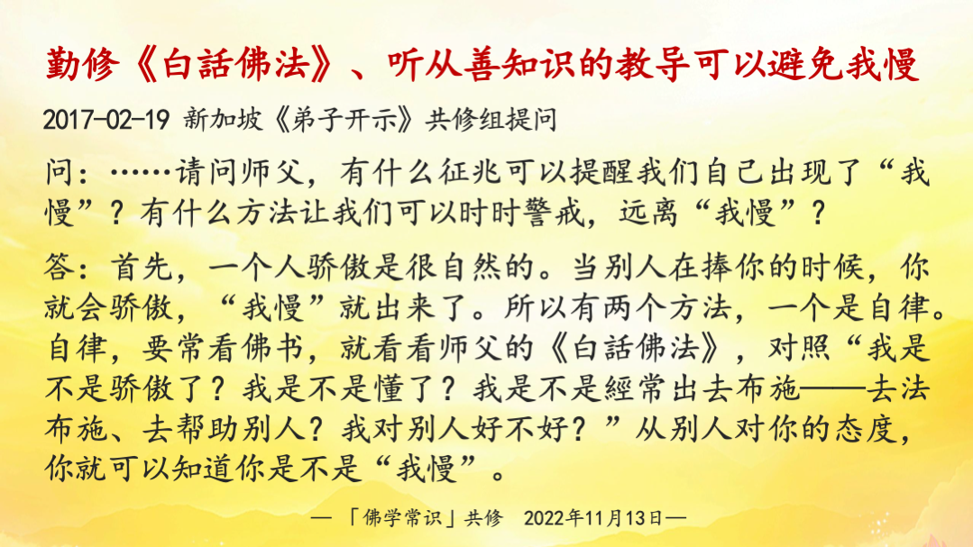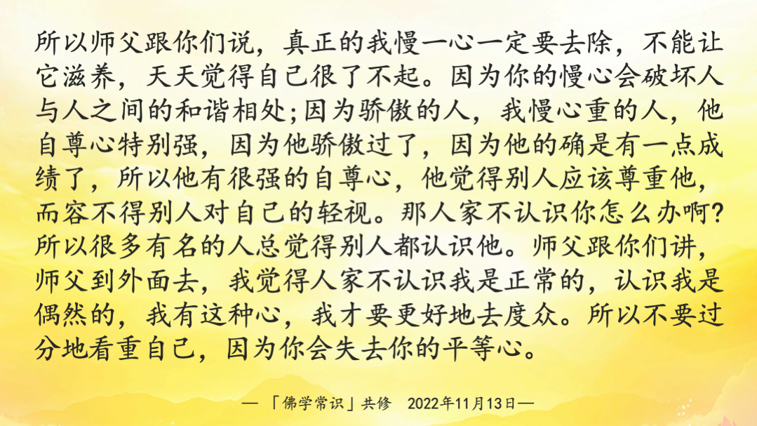 【共修】佛学常识 之:【戒慢】2、如何对治不同的我慢心|2022.11.13